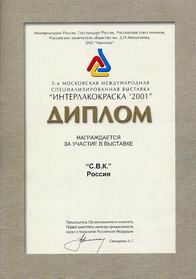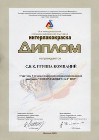 Продукции компании ежегодно присуждаются почетные дипломы отраслевой Международной выставки "Интерлакокраска":