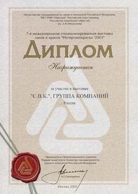 Компания "С.В.К." удостоена звания "Лидер региональной экономики", решением Общественно-экспертного совета смотров "Лучшие в России", "Лучшие в Москве", "Лучшие в Подмосковье" в 2006 г.была награждена дипломом "За активное участие в формировании цивилизованного потребительского рынка в России":