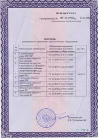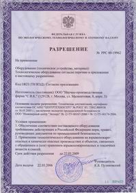 Всё оборудование, выпускаемое фирмой "С.В.К." имеет разрешение Федеральной службы по экологическому, технологическому и атомному надзору на применение на взрывопожароопасных и химически опасных производствах и объектах, связанных с обращением и (или) хранением взрывопожароопасных и токсичных веществ и смесей: